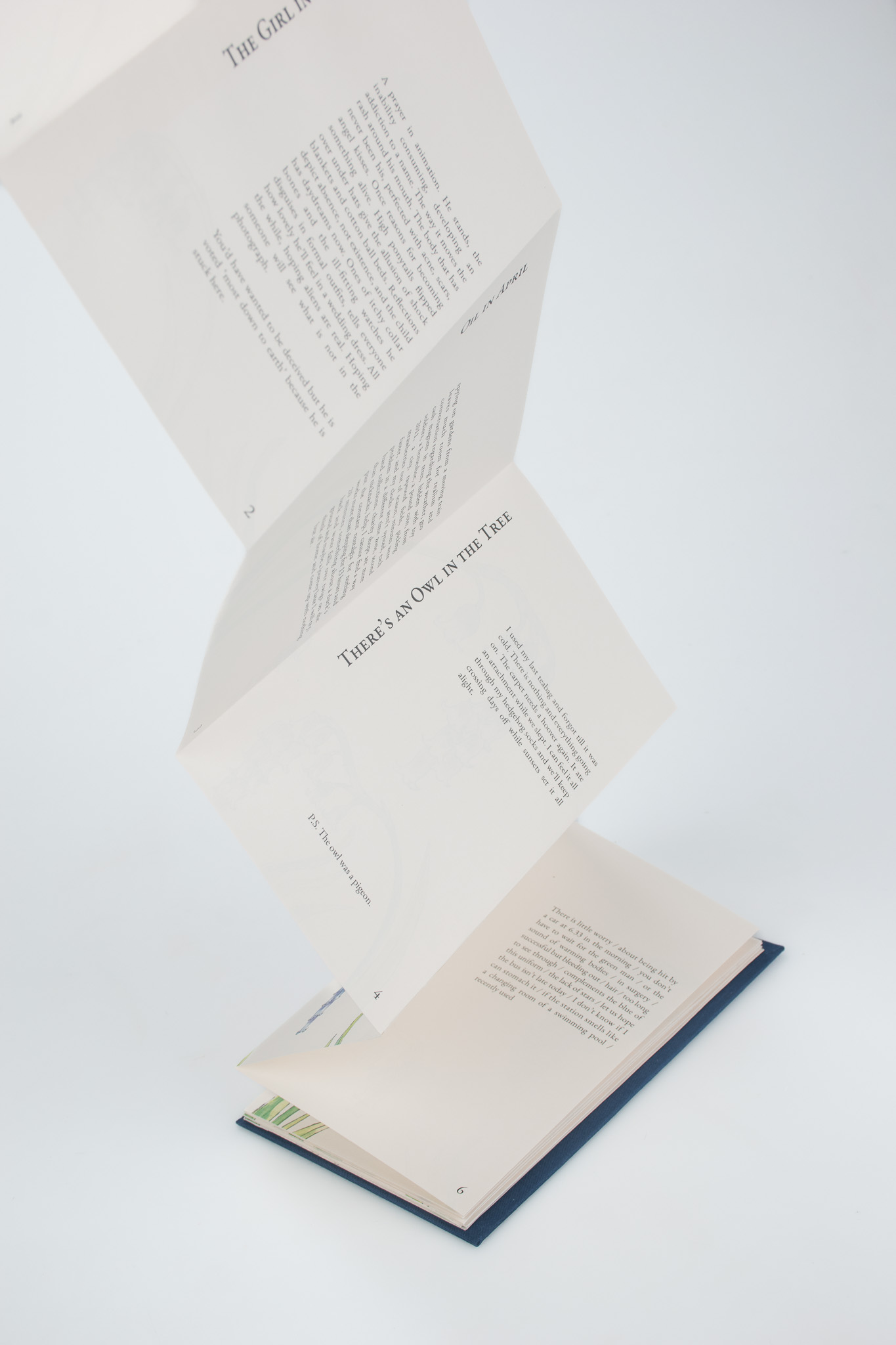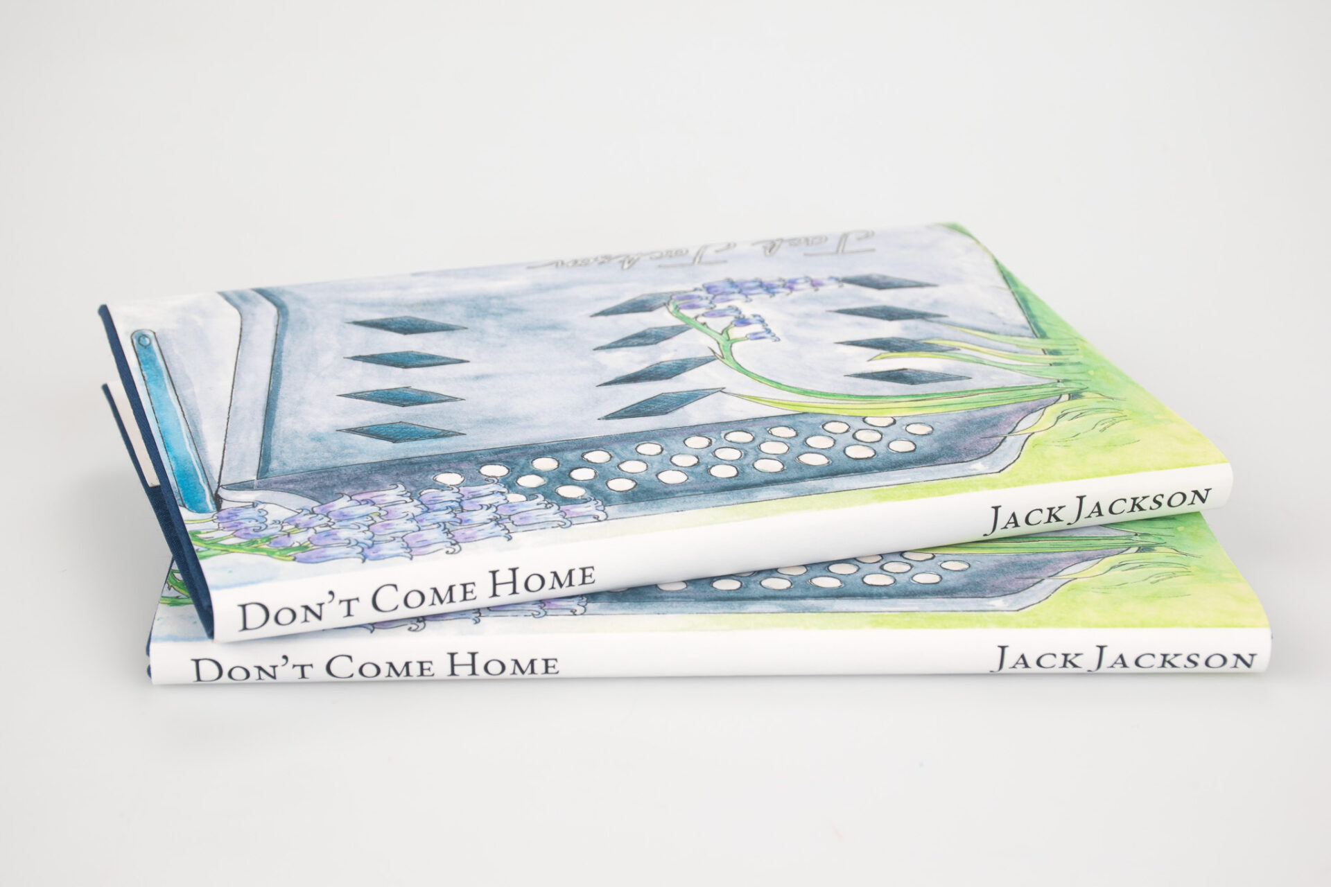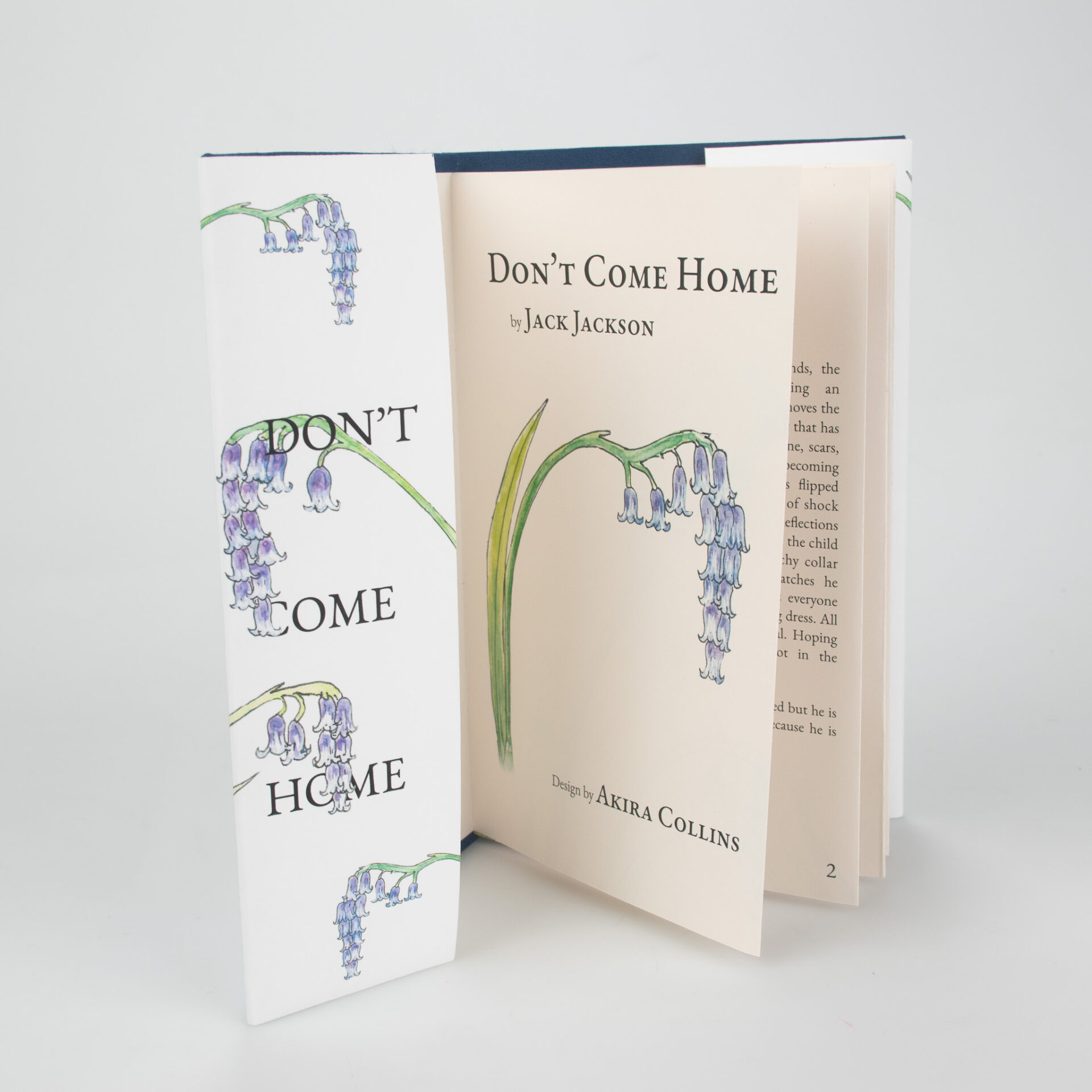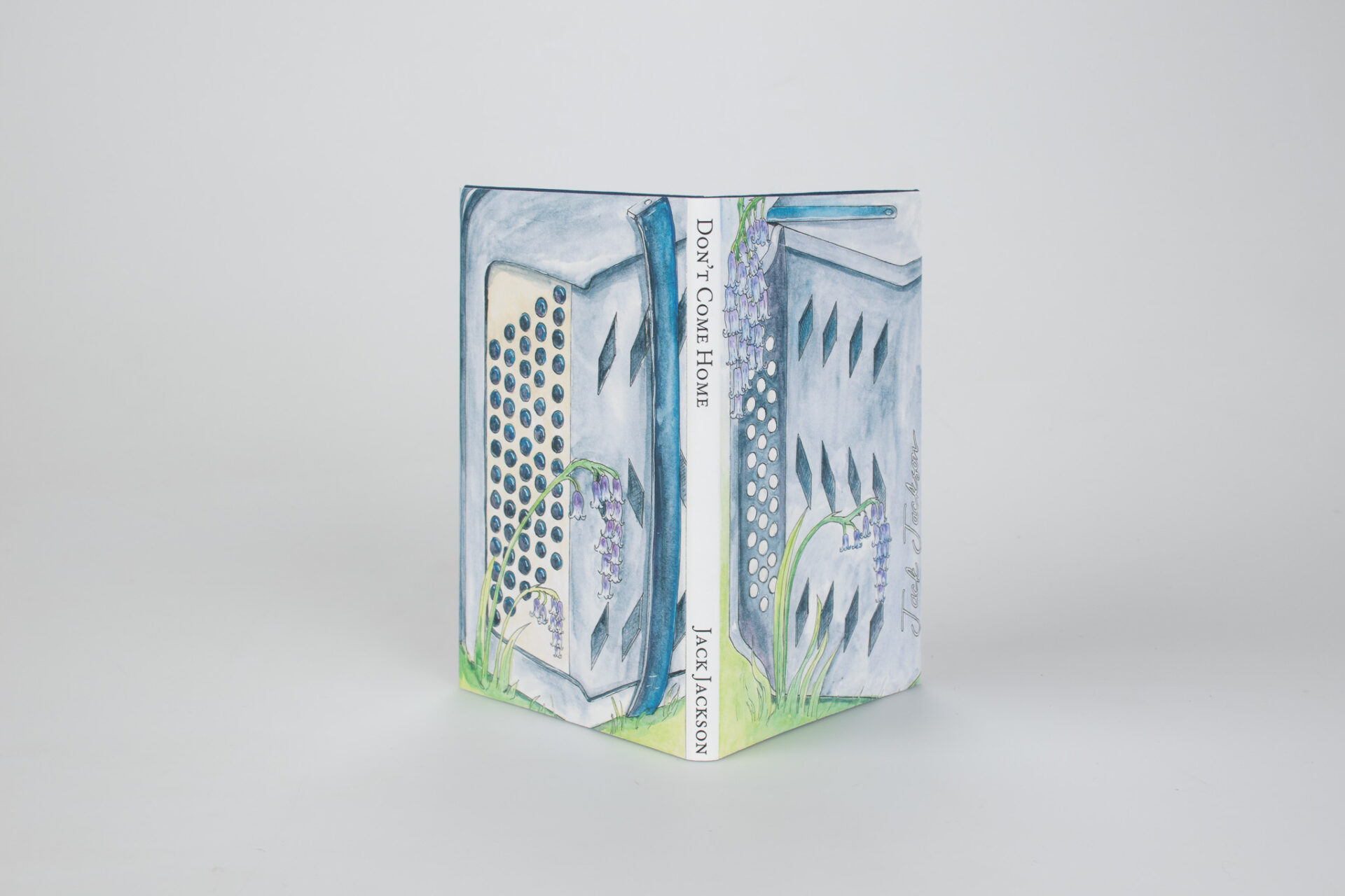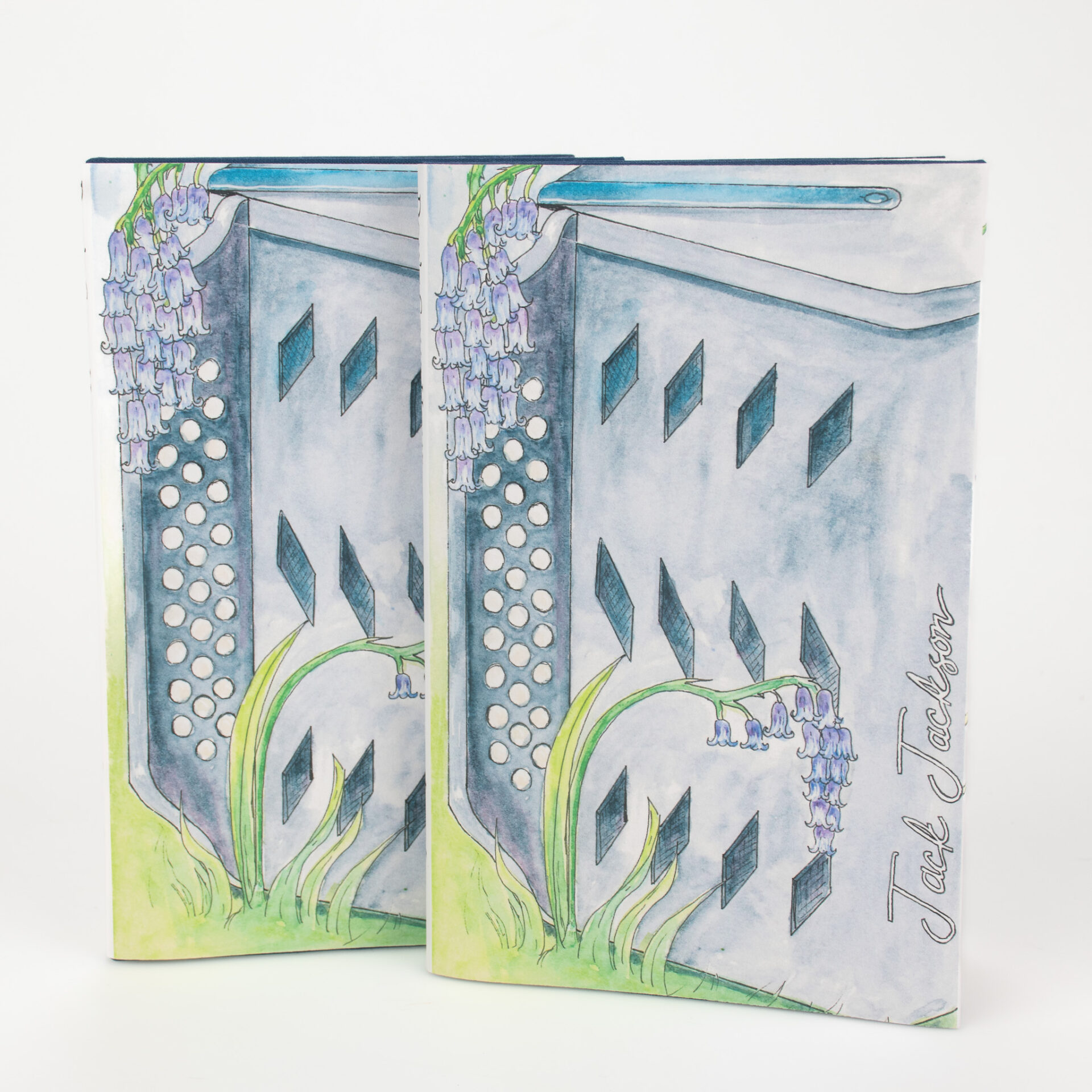 This type of binding is called a Concertina Bind, named after the instrument. It is uncommon to see in mass produced books as it is difficult to mechanize. This binding choice, and the cover illustration, is a nod to one of Jackson’s poems which mentions bluebells and an accordion.