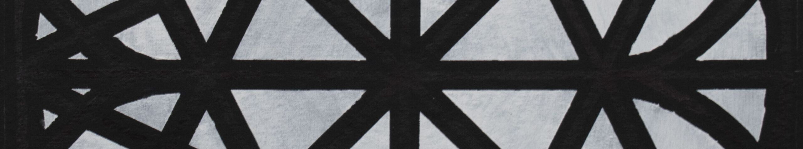 Each paining contains all the letters of the english alphabet overlayed on top of each other in a square format.
