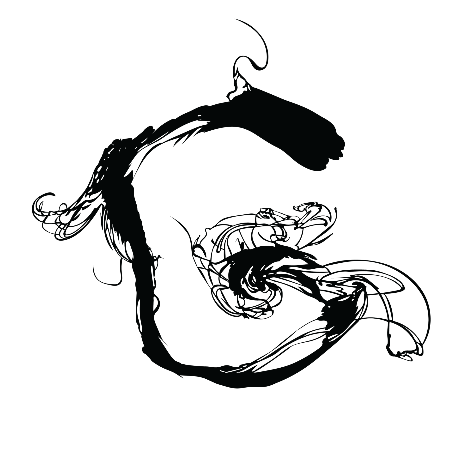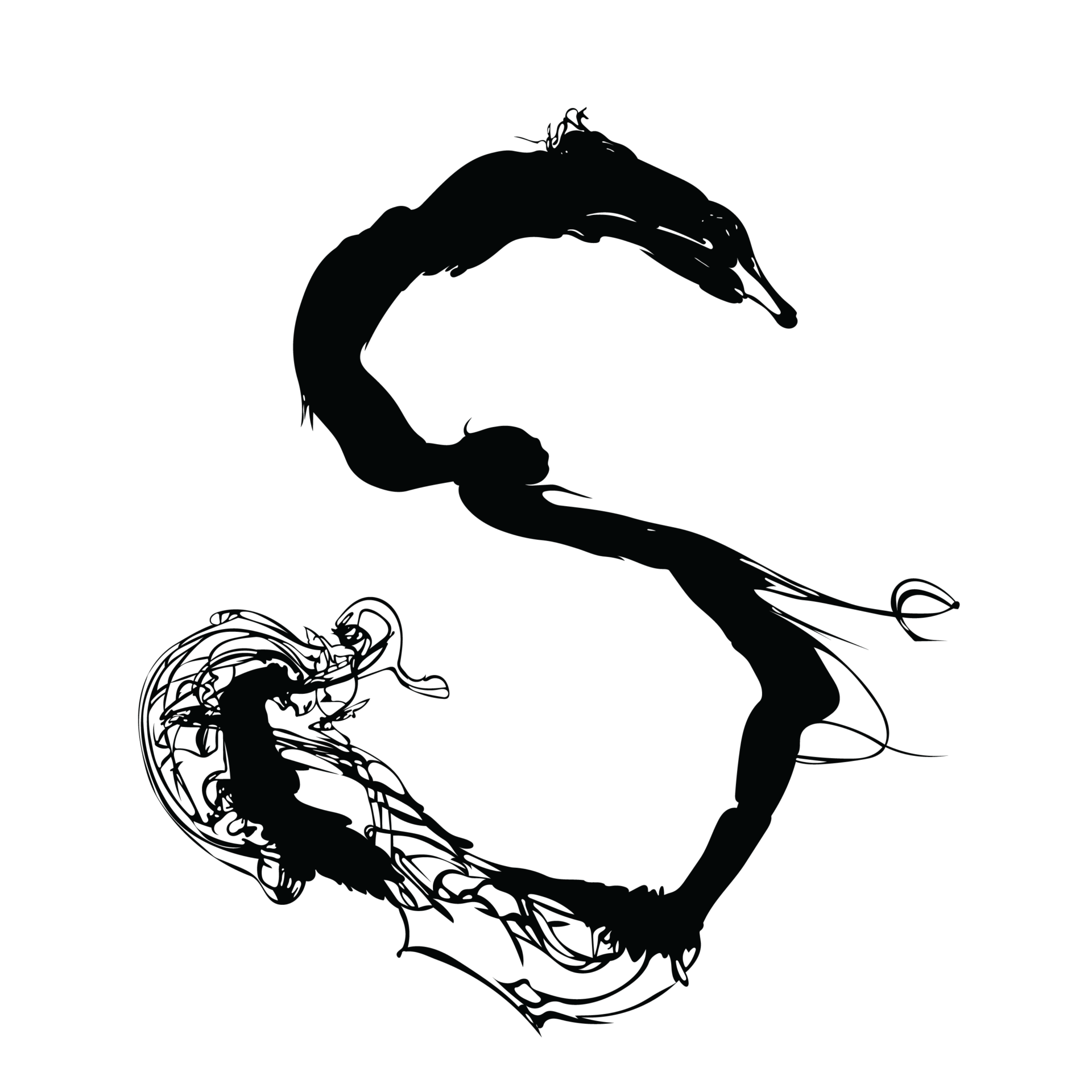 Capital S made to look like ink flowing through water, from the Inkdrop typeface designed by Akira Collins.