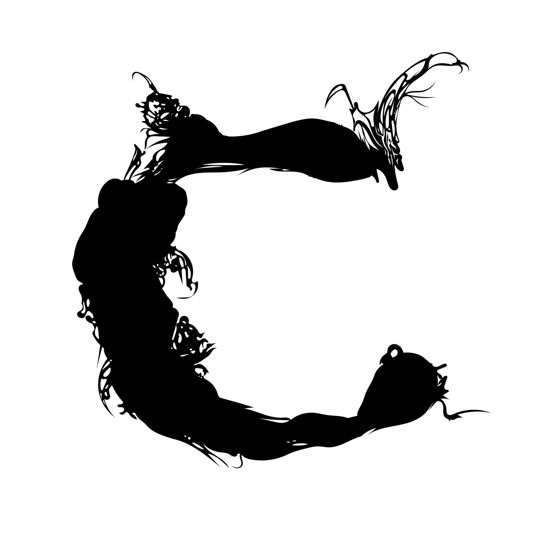 Capital C made to look like ink flowing through water, from the Inkdrop typeface designed by Akira Collins.