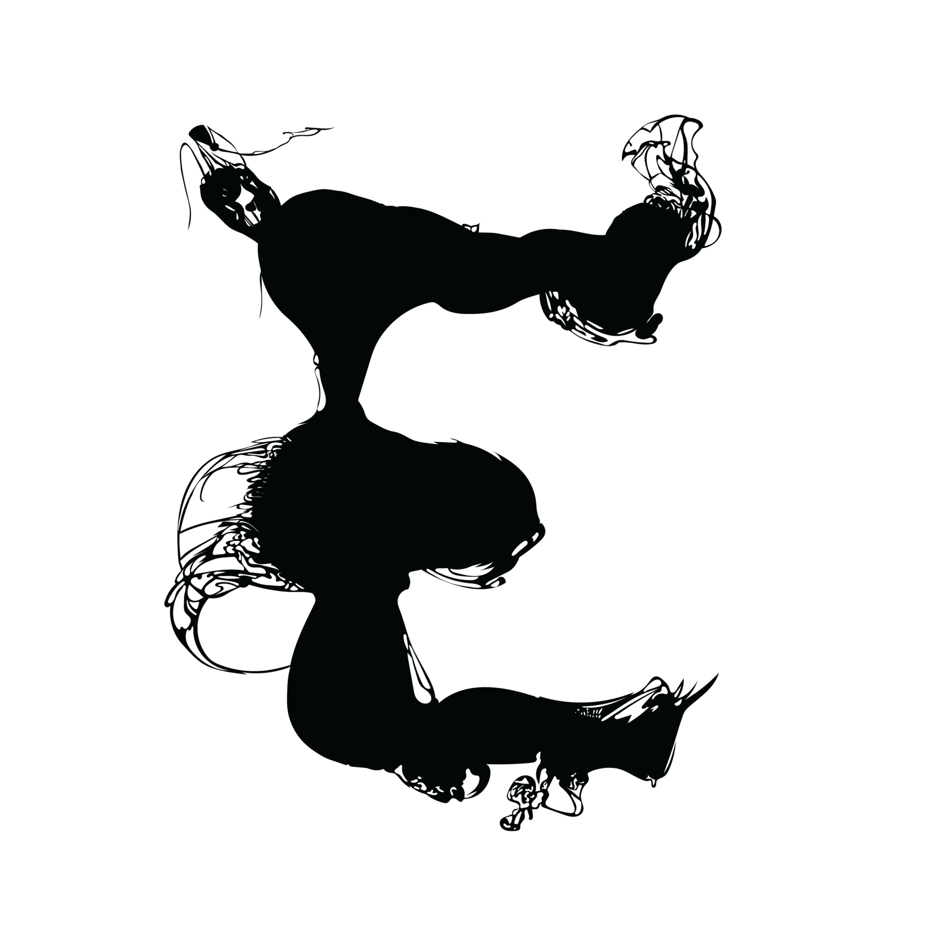 Capital E made to look like ink flowing through water, from the Inkdrop typeface designed by Akira Collins.