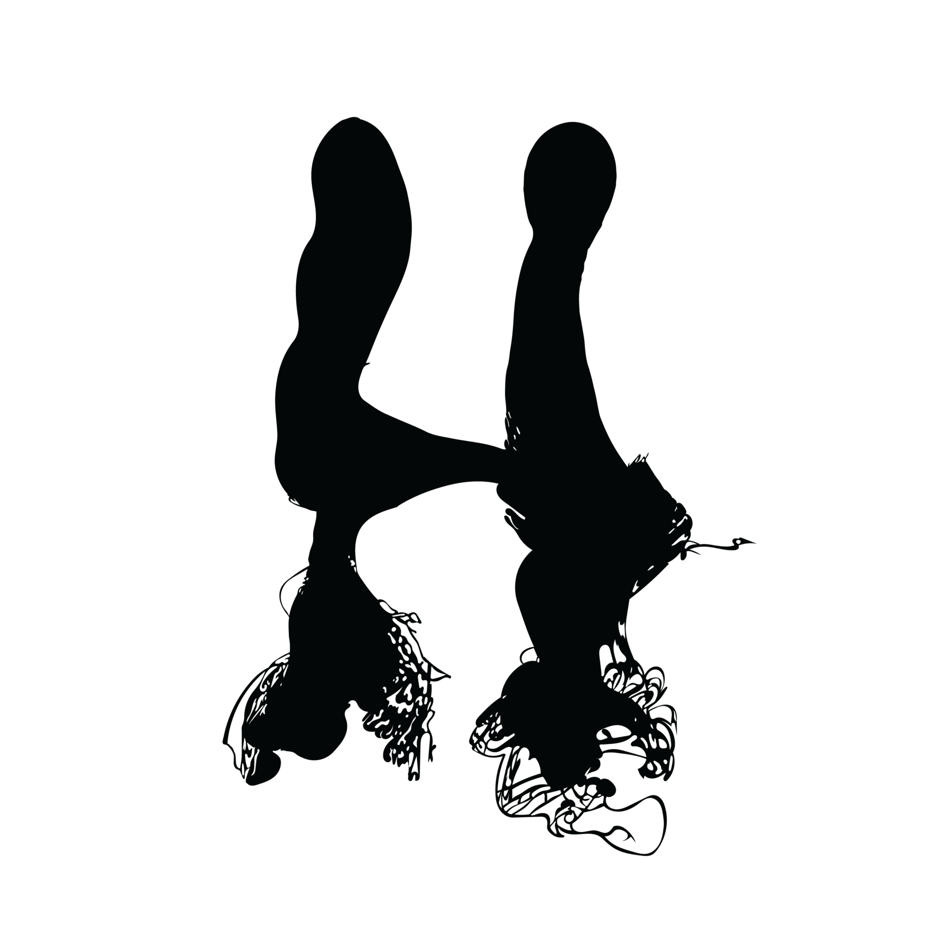 Capital H made to look like ink flowing through water, from the Inkdrop typeface designed by Akira Collins.