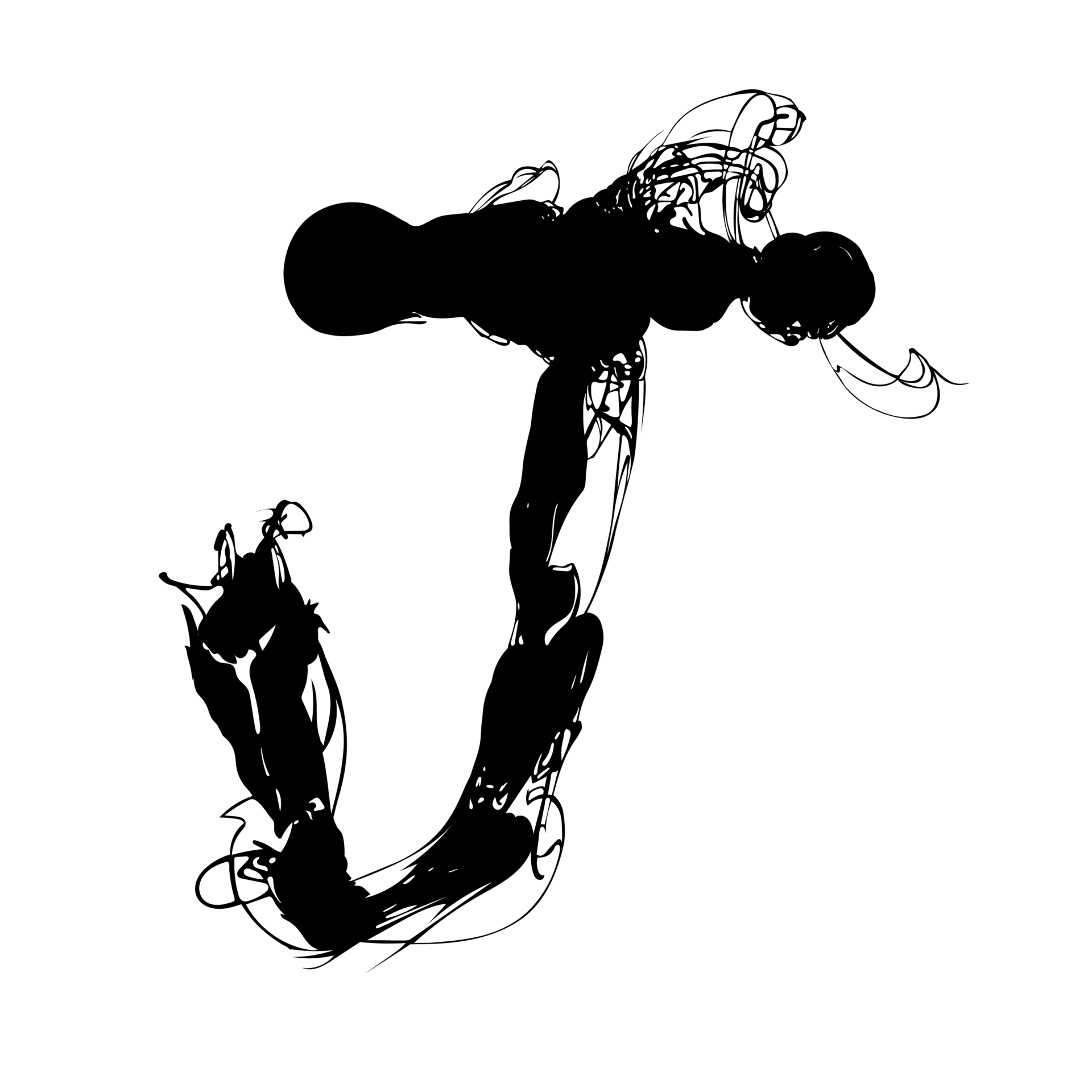Capital J made to look like ink flowing through water, from the Inkdrop typeface designed by Akira Collins.