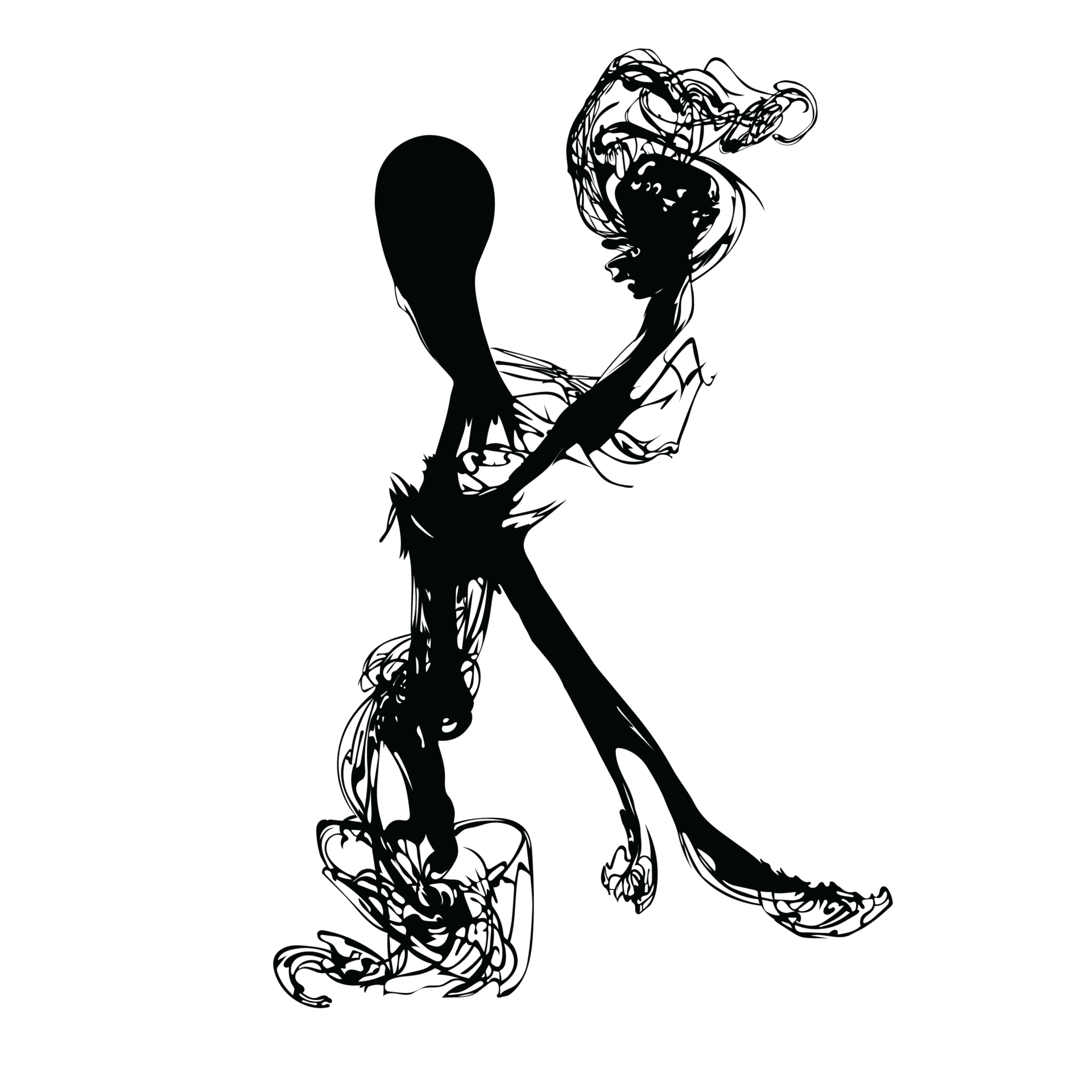 Capital K made to look like ink flowing through water, from the Inkdrop typeface designed by Akira Collins.