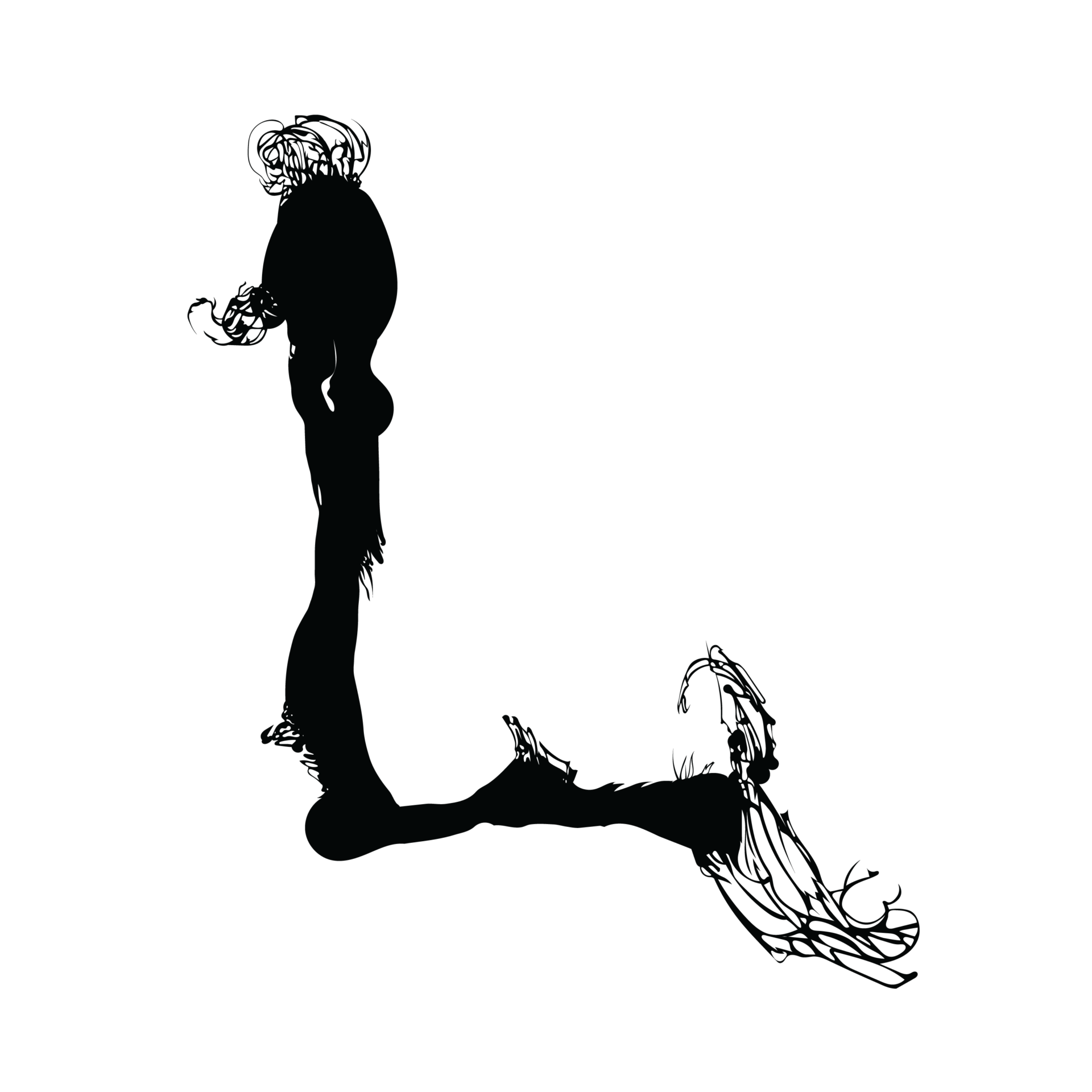 Capital L made to look like ink flowing through water, from the Inkdrop typeface designed by Akira Collins.