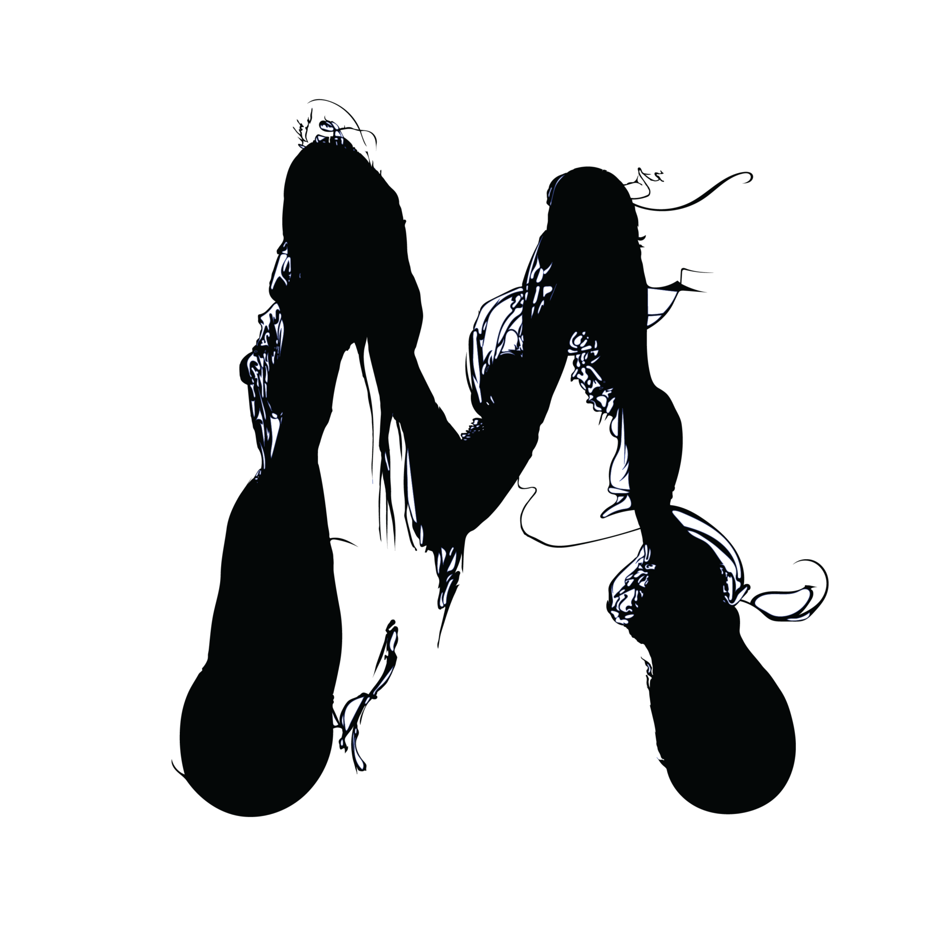 Capital M made to look like ink flowing through water, from the Inkdrop typeface designed by Akira Collins.