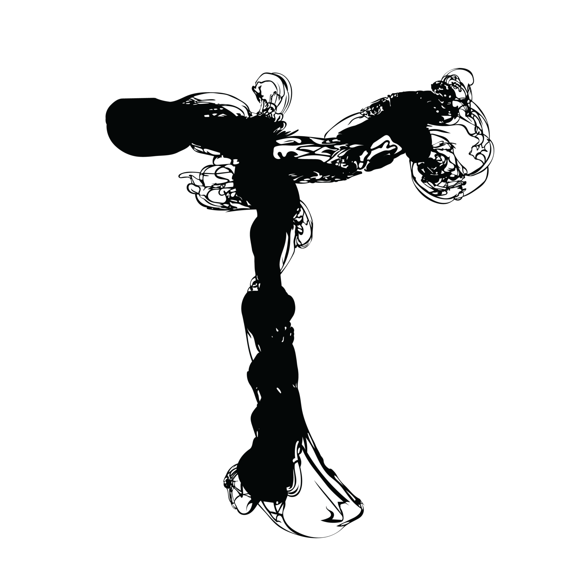 Capital T made to look like ink flowing through water, from the Inkdrop typeface designed by Akira Collins.