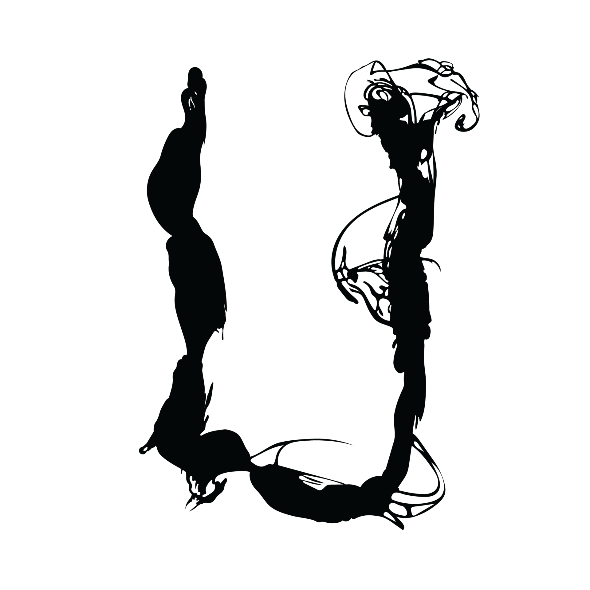 Capital U made to look like ink flowing through water, from the Inkdrop typeface designed by Akira Collins.