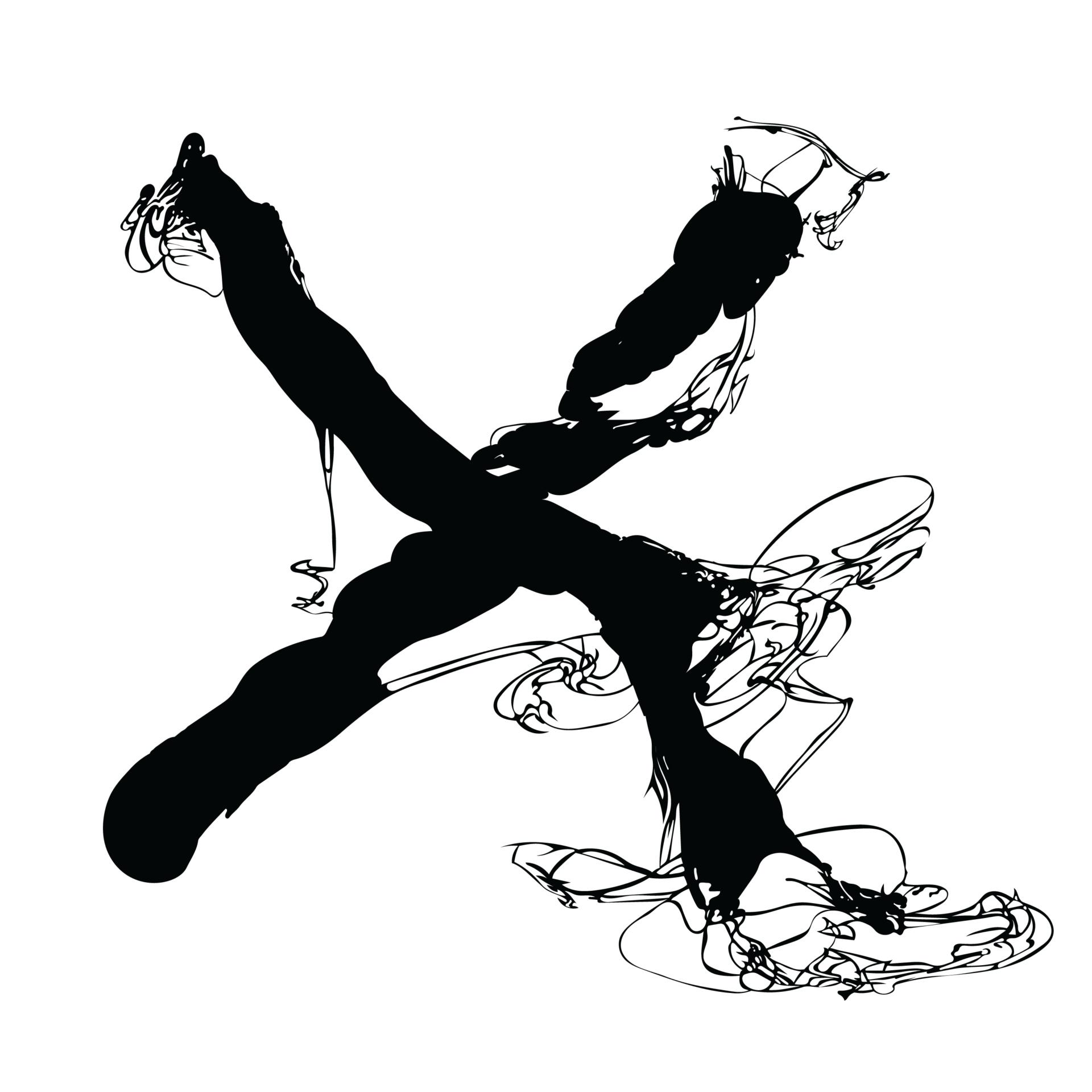 Capital X made to look like ink flowing through water, from the Inkdrop typeface designed by Akira Collins.
