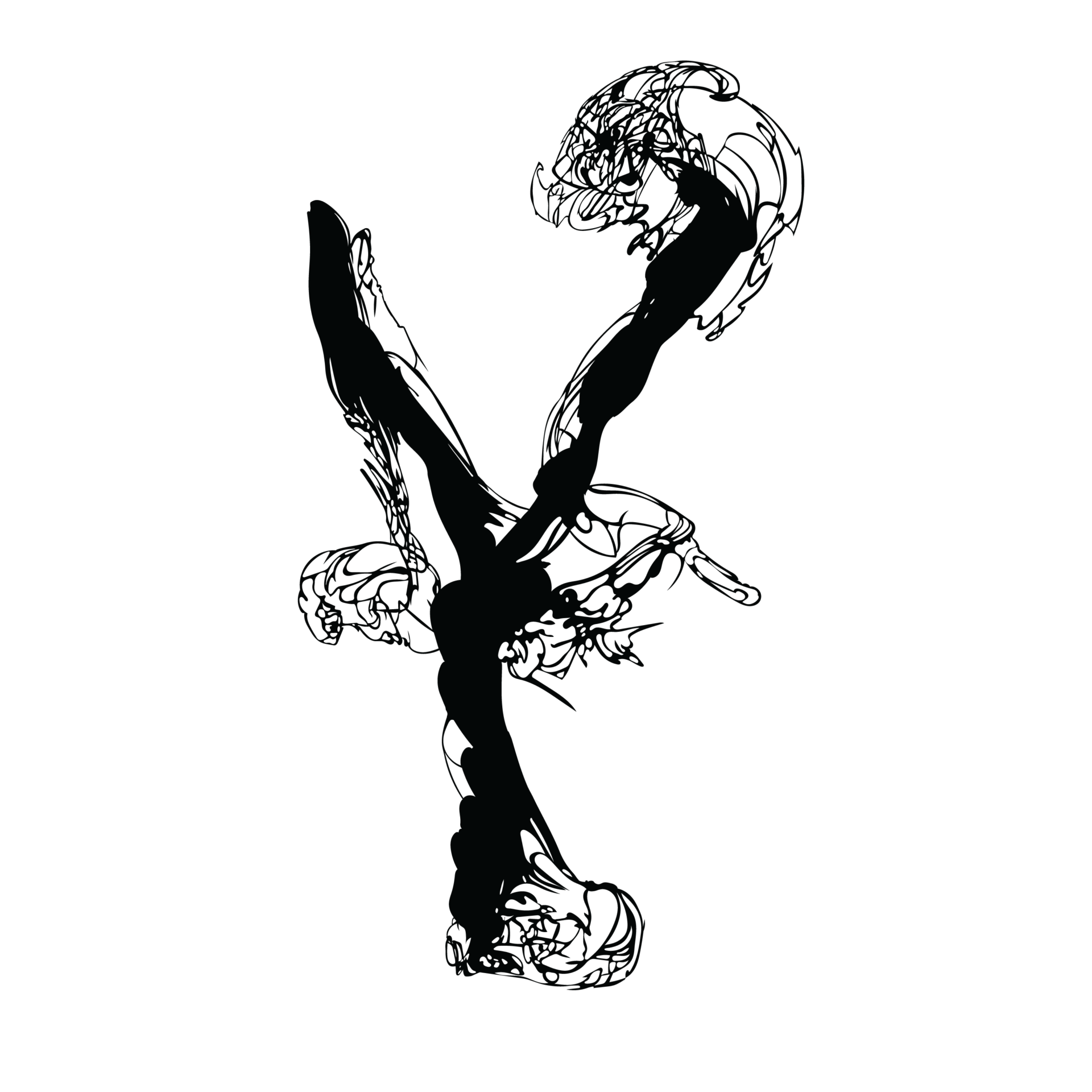 Capital Y made to look like ink flowing through water, from the Inkdrop typeface designed by Akira Collins.