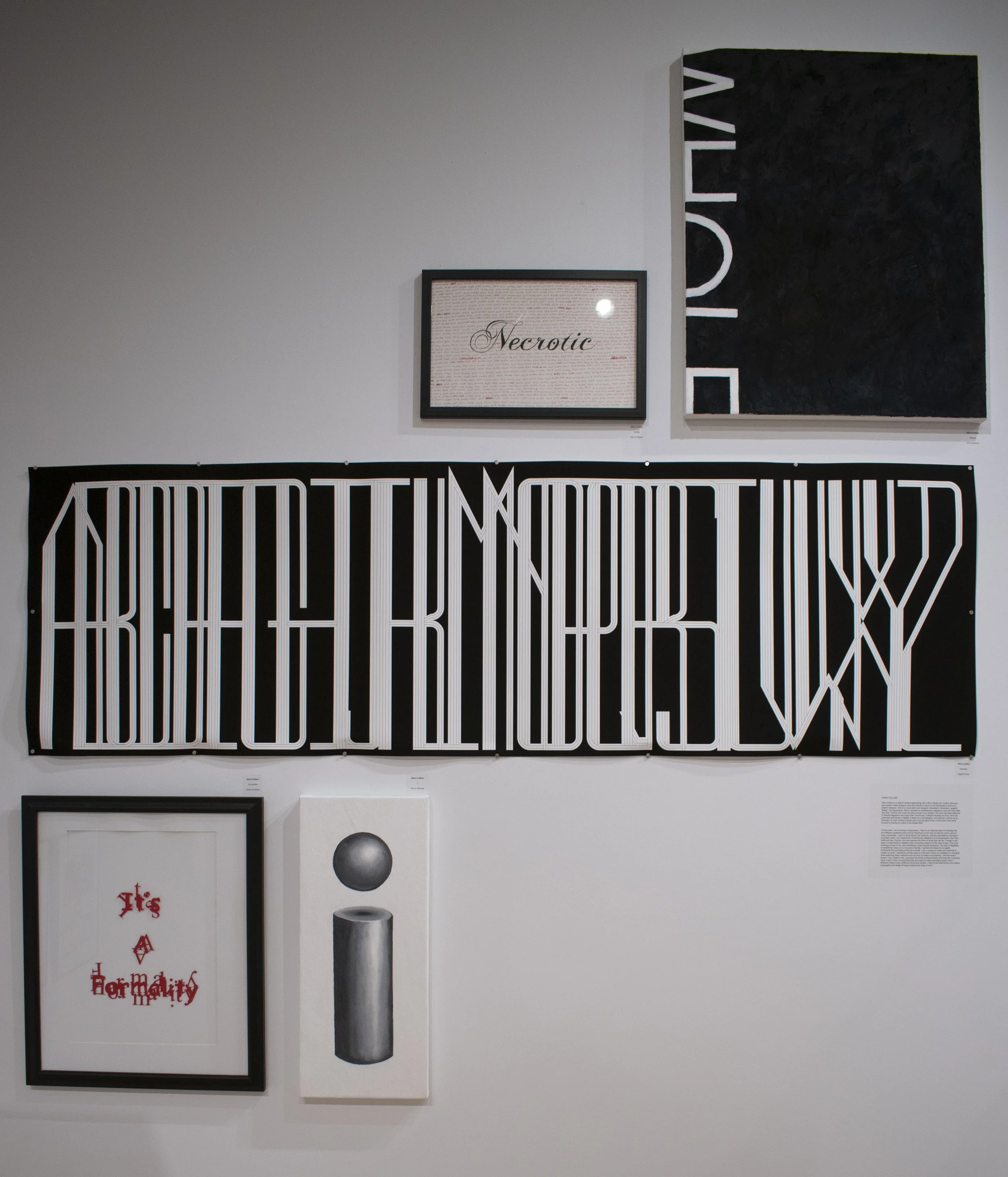 A collection of typographic paintings and designs made by Akira Collins for their BA Senior Exhibit.